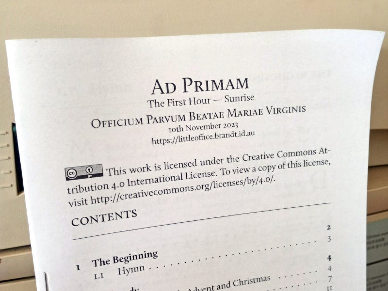 It has been a while since I posted a video, so I added a poll on Youtube. The results strongly suggested it was time to rerecord the Little Office for Advent. One comment specifically requested Prime. So here it is.